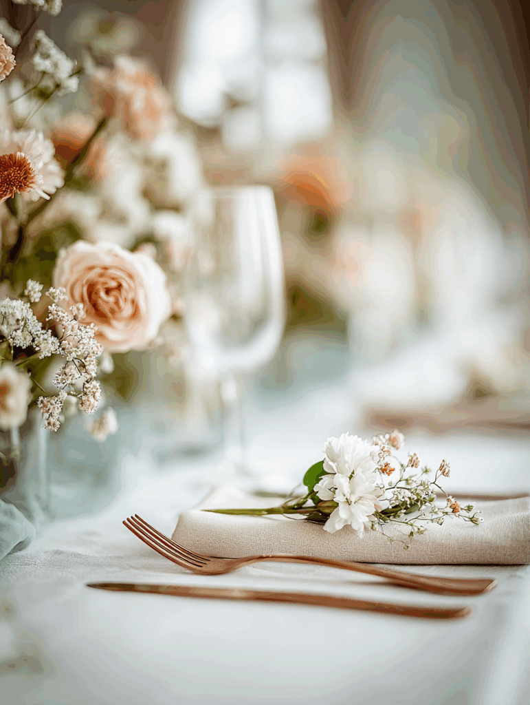 Assiettes fleuries, cristal délicat, porcelaine sobre et couverts en argent : chaque pièce est choisie pour son élégance et sa capacité à sublimer tous les styles de réception.