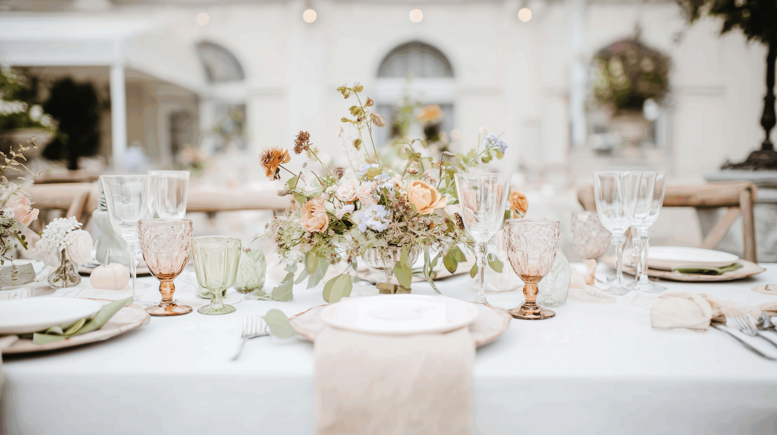 Vaisselle vintage chic, porcelaine fine, cristal et décoration raffinée pour mariages et événements haut de gamme.